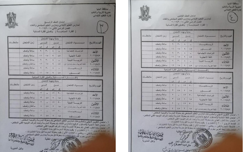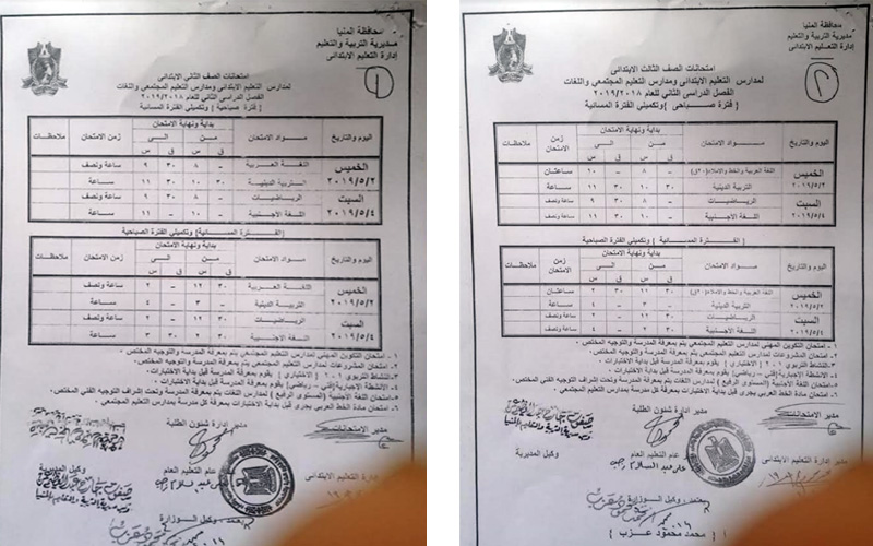 محافظ المنيا يعتمد جداول امتحانات المرحلتين الابتدائية والإعدادية.. (صور)