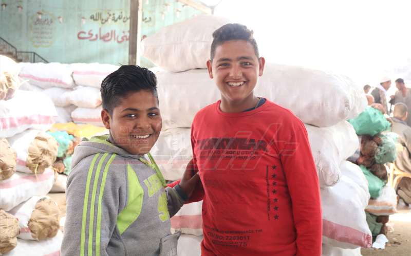 يقولون من أجمل الابتسامات وأغلاها، ابتسامة الرضا بالحال، رغم الشقاء والمعاناة التي يتحملها العامل بمهنة "الشيال" خاصة في سوق يعتبر من أكبر الأسواق المصرية، فمنذ الصباح الباكر يقوم برفع ونقل كميات كبيرة من أقفاص الخضروات والفاكهة، على كتفيه المنهكين من الزمن ومضي العمر، فمنهم من تعدى عمره الخمسين.