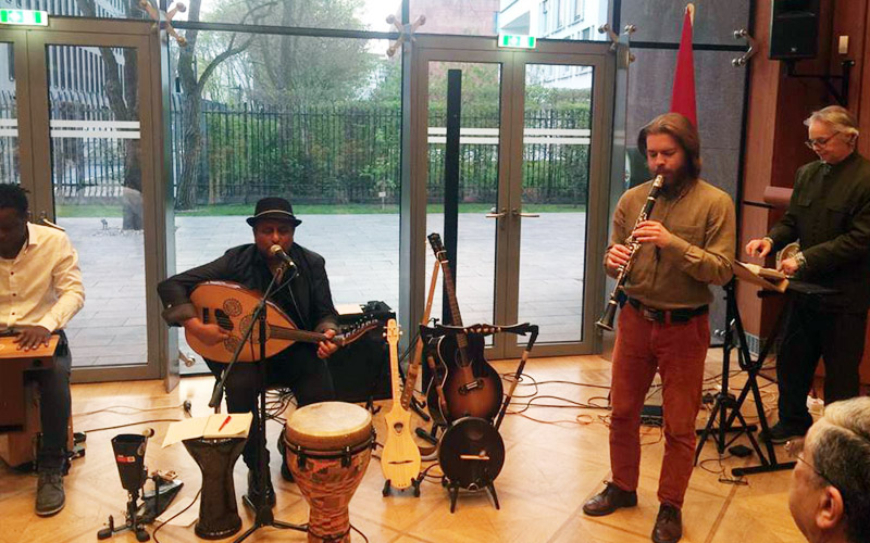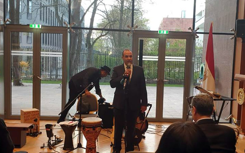 وتجدر الإشارة إلى أن الاحتفالية تم تنظيمها من جانب السفارة المصرية وبالتعاون مع المكتب الثقافى التابع لها في برلين، وحضرها عضويّ مجلس النواب المصري الدكتور محمود حسين والنائب محمد السلاب خلال زيارتهما لبرلين، وعدد من نواب البوندستاج الألماني ورئيس الاتحاد الألماني للشركات الصغيرة والمتوسطة، فضلاً عن عدد من السفراء المعتمدين، وبحضور ١٥٠ مدعو من رموز الجالية المصرية ومن المواطنين الألمان. هذا، وقام الفنان المصري "ناصر قلادة" والفرقة المصاحبة له بعزف وغناء العديد من الأغانى المصرية المعروفة بتوزيع شرقي وغربي، مما نال إعجاب جميع الحاضرين.