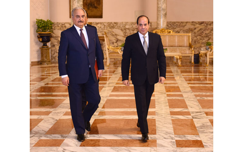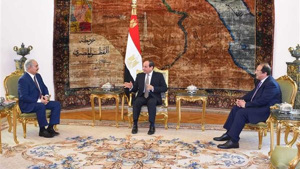 وكان استقبل الرئيس عبد الفتاح السيسي اليوم بقصر الاتحادية المشير خليفة حفتر القائد العام للقوات المسلحة الليبية، حيث تم بحث تطورات ومستجدات الأوضاع على الساحة الليبية، وحرص مصر على وحدة واستقرار وأمن ليبيا.