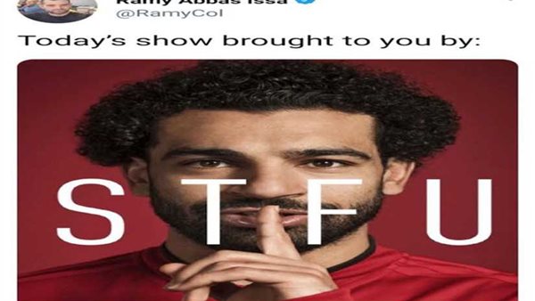 ونشر رامي عباس، وكيل أعمال النجم المصري، تغريدة عبر حسابه الرسمي على موقع التدوينات القصيرة "تويتر" صورة لـ"صلاح" ودون عليها "أغلقوا أفواهكم".