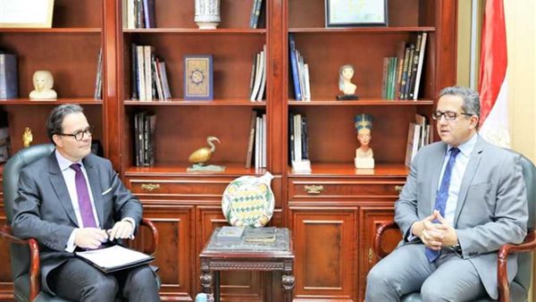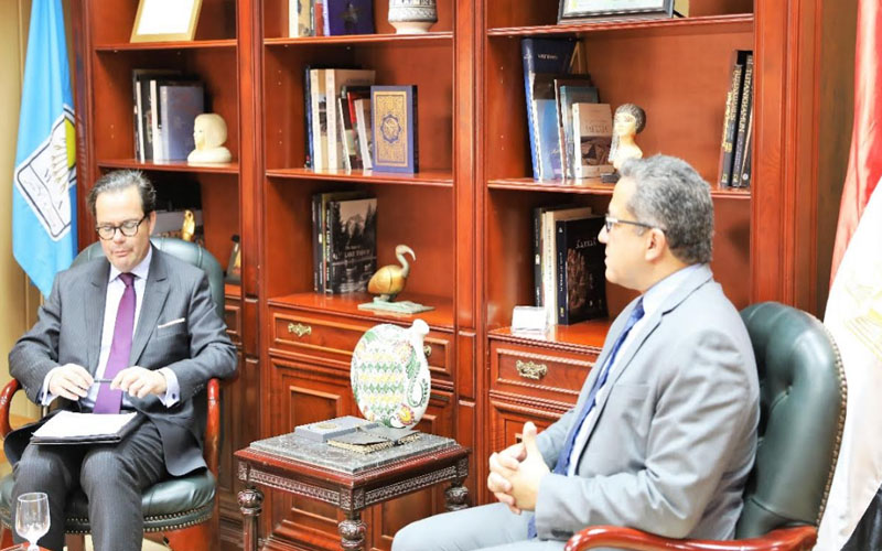 استقبل الدكتور خالد العناني وزير الآثار بمكتبة بمقر الوزارة بالزمالك، السفير ستيفان روماتيه سفير فرنسا بالقاهرة لمناقشة سبل التعاون بين البلدين في مجال العمل الأثري.