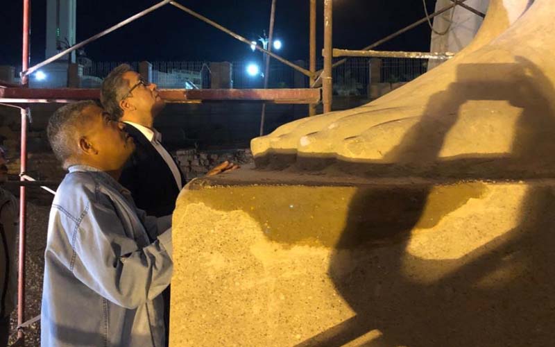 فور وصوله إلى مدينة الأقصر مساء اليوم الأربعاء، حرص الدكتور خالد العناني وزير الآثار، على التوجه إلى معبد الأقصر لتفقد اللمسات الأخيرة لعملية تجميع وتركيب وترميم وإعادة إقامة تمثال الملك رمسيس الثاني بمكان عرضه الأصلي بواجهة الصرح الأول لمعبد الأقصر، الذي سيتم إزاحة الستار عنه مساء غد الخميس في إطار احتفالات وزارة الآثار بيوم التراث العالمي.