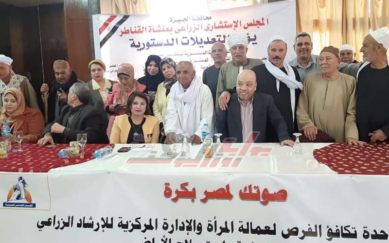 واشارت الي أهمية دور الفلاح فى التوعية بأهمية المشاركة السياسية فى أهمية الإدلاء بأصواتهم فى الاستفتاء الدستورى ٢٠١٩والذي يبدأ غدا السبت وعلي مدار ٣ايام وتناول اللقاء أيضا تعريف السيدات المزارعين الحضور بكافة المواد التى تم تعديلهاواهمية هذه التعديلات بما يعود بالنفع على المواطنين جميعا وخاصة المرأة فللمرأة تمثيل أكبر فى مجلس النواب بحيث لا يقل عن ٢٥% من مقاعد مجلس النواب لزيادة مشاركتها السياسية لدعم التمكين الاقتصادى والاجتماعي والسياسى بما يتفق مع وضعها واهميتها فى المجتمع ودورها الهام والفعال والمؤثر فى عملية التنمية المستدامة فى نصف المجتمع وتنجب وتربى وتعلم وتوجه النصف الآخر لتصبح هى المجتمع كله.