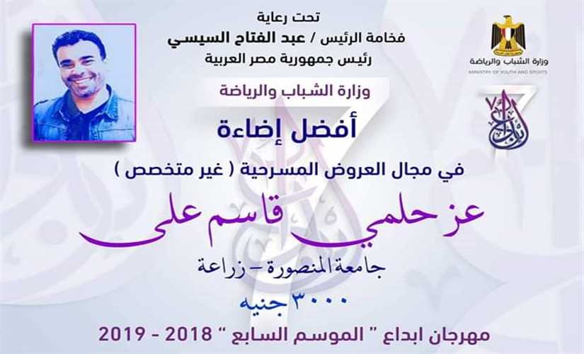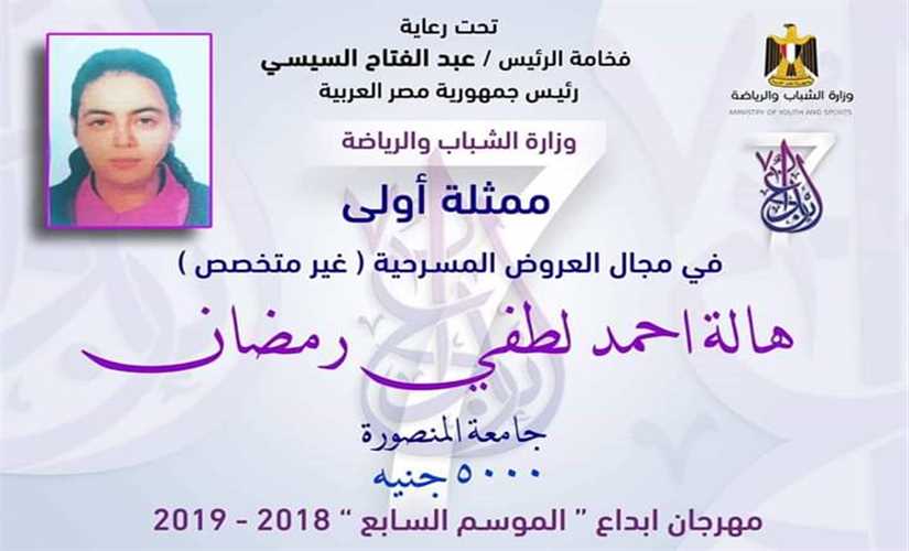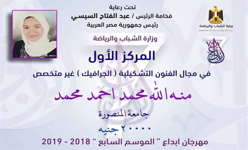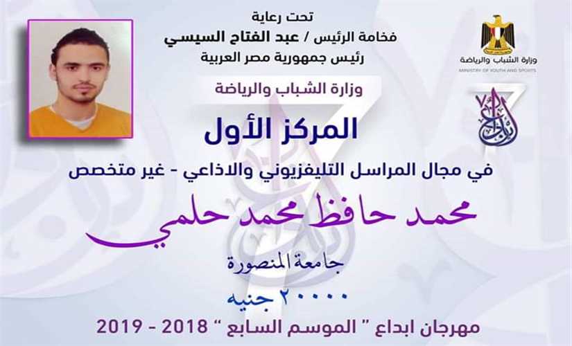 وحصل على المركز الأول كلًا من روضة خالد منصور من كلية الفنون الجميلة في مجال التصوير الزيتي متخصص، ومنه الله محمد أحمد في مجال الجرافيك الطباعة الفنية غير متخصص، وإسراء أحمد العقاد من تمهيدي ماجستير كلية الآداب في مجال المراسل التلفزيوني متخصص، ومحمد حافظ حبيب من كلية الزراعة في مجال المراسل التلفزيوني غير متخصص، وهالة السلاب من كلية الصيدلة في مجال العرض المسرحي غير متخصص.