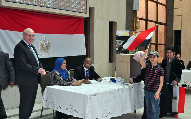 وكان السفير بدر عبدالعاطي، في استقبال أبناء الجالية المصرية، فيما حرص المصوتون على التقاط صور جماعية، في اجواء احتفالية.