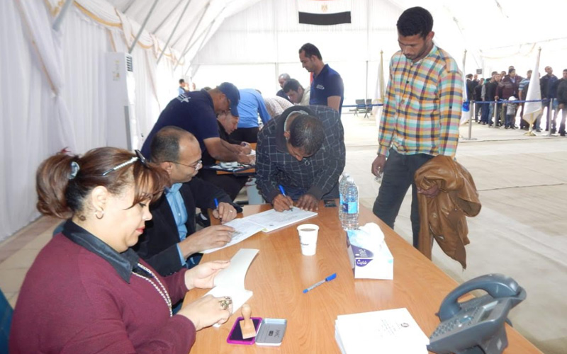في حين تفقد وزير الطيران المدني الفريق يونس المصري، اللجان الانتخابية، وأثنى على حرص العاملين على المشاركة في هذا الاستحقاق الوطني.