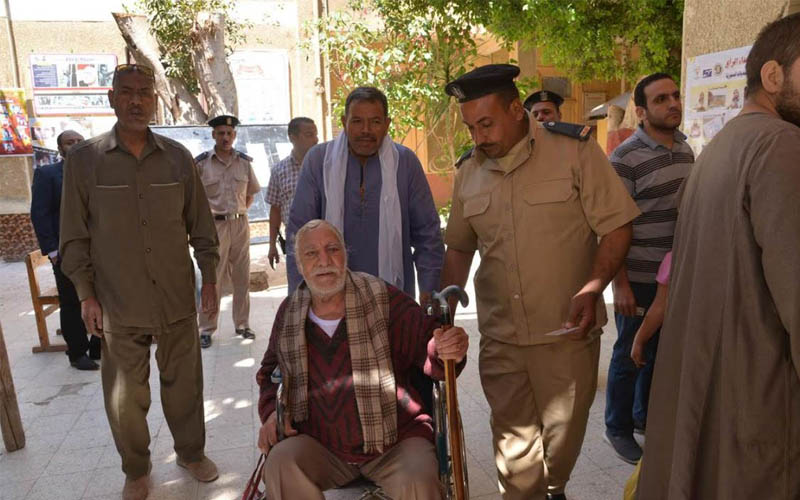 في لفتة انسانية .. محافظ أسيوط يصطحب مسنا على كرسي متحرك للإدلاء بصوته