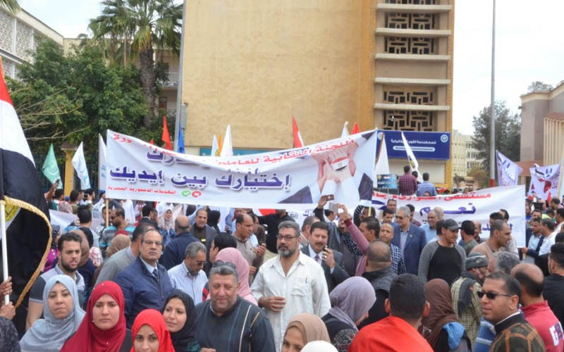 مسيرة حاشدة بجامعة المنصورة لدعم التعديلات الدستورية