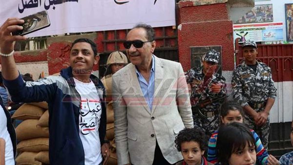 محمد أبو داود يلتقط الصور مع الجماهير بعد إدلائه بصوته في المعادي