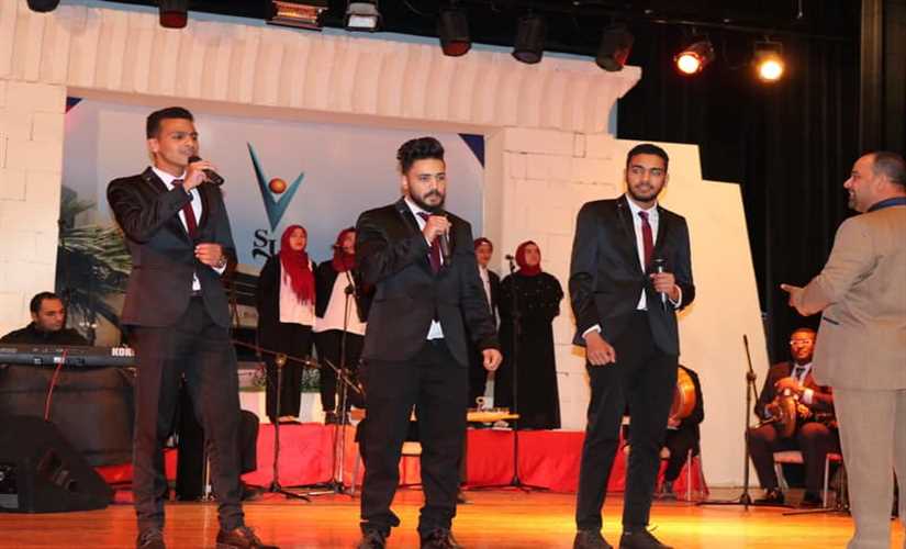 وقد شهد الحفل عدة فقرات فنية وأغان وطنية وفنون شعبية .