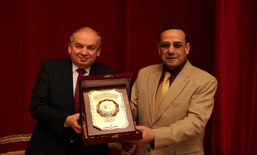 وقدم الدكتور حاتم البلك رئيس الجامعة نيابة عن الدكتور حسن راتب رئيس مجلس أمناء الجامعة درع الجامعة إلى اللواء دكتور محمد عبد الفضيل شوشة محافظ شمال سيناء تقديرًا لجهوده فى دعم العملية التعليمية على أرض سيناء .