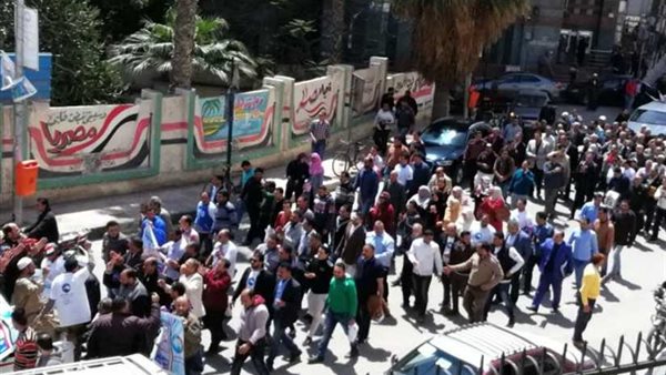 نظم أهالى الدقهلية، مسيرة للعاملين أثناء توجههم للجان الاستفتاء الدستوري، اليوم الأحد، لحث المواطنين على المشاركة والتصويت.