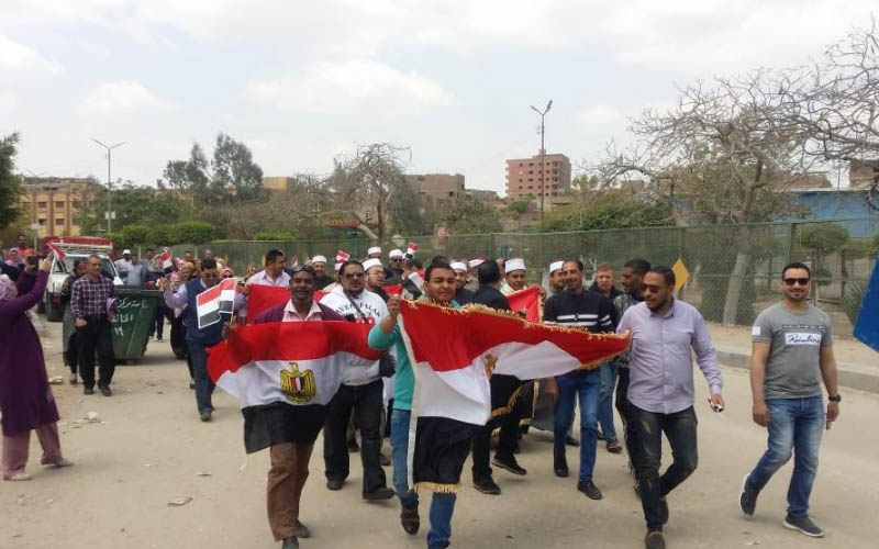 نظم أهالي الخانكة، مسيرة بالأعلام لتشجيع المواطنين على النزول للتصويت على التعديلات الدستورية
