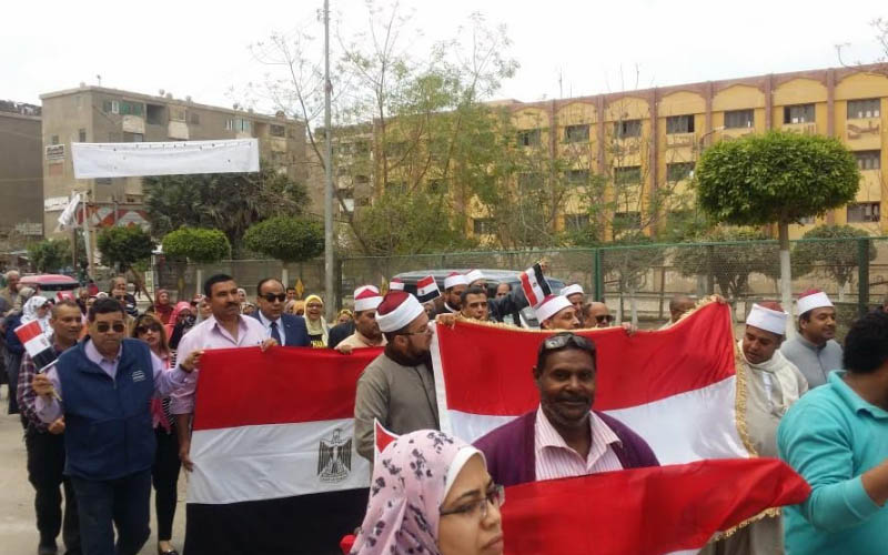 مسيرة بالخانكة تحث المواطنين للمشاركة في الاستفتاء