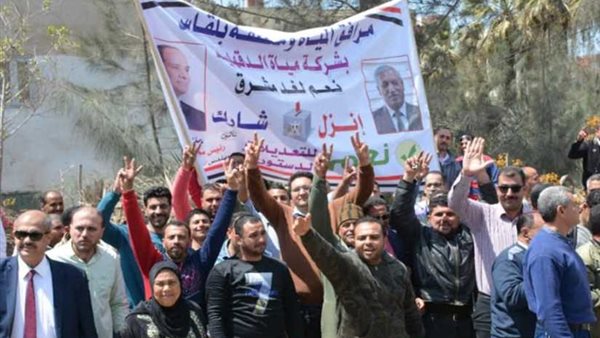 كما شارك الدكتور كمال جاد شاروبيم، محافظ الدقهلية، في المسيرة التي نظمتها شركة مياه الشرب والصرف الصحي بمدينة بلقاس، خلال الجولة التي قام بها لتفقد لجان الاستفتاء.