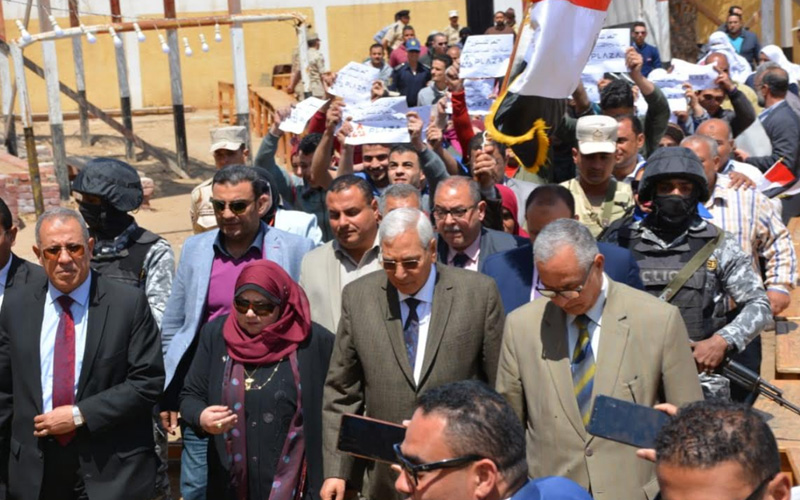 جاء ذلك خلال الجولة التي أجراها لتفقد لجان الاستفتاء بمدرسة جمصة التجريبية، لمتابعة سير عملية التصويت، وبرفقته سحر لطفي، رئيس المدينة.