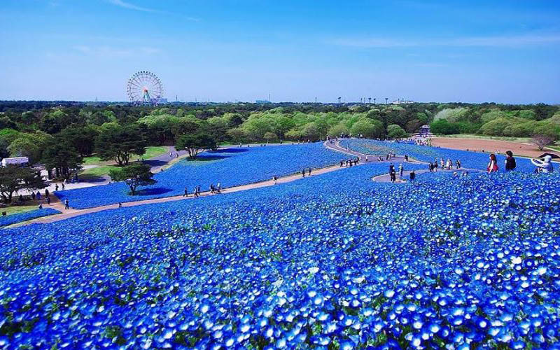 تعد حديقة هيتاشي سيسايد بارك، التي تقع بالقرب من نهر إيجورا في اليابان من أجمل حدائق الزهور حول العالم، وهي حديقة مترامية الأطراف تقع على مساحة ٢٠٠٠ متر مربع.