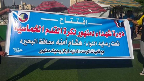 و آناب محافظ البحيرة ، السكرتير العام عبد الرحمن الشهاوى ورئيس مدينة دمنهور محمد خميس بإفتتاح دورة شهداء دمنهور للكرة الخماسية التى تقام لأول مرة بدمنهور.