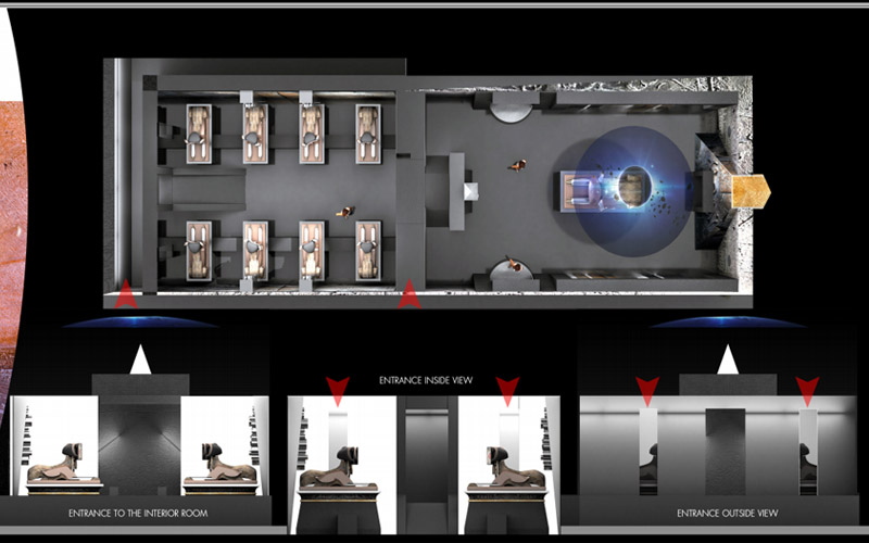 يرتحل بنا الفنانون الثلاثة في مسيرة تشكيلية مثيرة مشوقة، حينما نتعرف على أنفسنا، ونتواصل عبر الفنون التشكيلية التي يقدمها الجناح المصري حينها سنكون أناسًا أفضل، وعندها فقط سوف نستحق تلك الأوقات المشوقة، يأخذنا تمثال خنوم الهجين الذي تحول إلى راوٍ على يدي أحمد عبد الكريم و إسلام عبد الله، وفي رحاب لوحات أحمد شيحا التصويرية ، التي تتردد فيها أصداء الفن المصري القديم بمثالياته و جمالياته الأنيقة، يصحبوننا إلى مواجهة تفاعلية نشهد فيها جلبة التاريخ تلك الحياة الصاخبة بالبطولات والإنجازات والمآسي والمذابح والجرائم المخزية، يتخذ الفنان المصري المعاصر قناعًا يشبه ذلك الحكيم النذير الذي كان ينذر الملوك في أوائل الدولة الوسطى "إيب ور" (الرجل ذو القلبِ العظيم)، ذلك الفطن الذي كان يكتب تحذيراتٍ، ونذرٍ تنبئ بالنهايات المحتومة لقوى الشر، يقدم لنا أحمد وإسلام عملًا تجهيزيًا في الفراغ بلغة تشكيلية تستقي مفرداتها من الفن المصري القديم، فنشاهد البوابات و التخطيط المعماري المتماثل على المحور الرأسي لفراغ العرض والمسلة والهرم والتماثيل، وتلك الأصوات التي تنبع من النهر وحفيف الأشجار، حيث الأحراش القديمة في الدلتا تنبئ عن قدوم حتحور، صليل الذهب والصنوج في كفوف خادمات المعبد الساحرات، عبق البخور وخشب الصندل، في ردهات المجهول القادم، يقولون لعلكم تقضون أوقاتًا مشوقةً بصحبتنا في رحلتنا عبر تاريخ الإنسانية الحافل بالإنجازات والخيبات، ذلك التعبير الاستلهامي لفكرة التراث الحضاري المصري القديم، الذي يذكرنا بتلك الحوليات الديموطيقية في الأسرة الحادية والعشرين، وهي تردد، أيها الملك احذر وتحرَّ الميزان كي تبارك الأرضُ بالعدل.