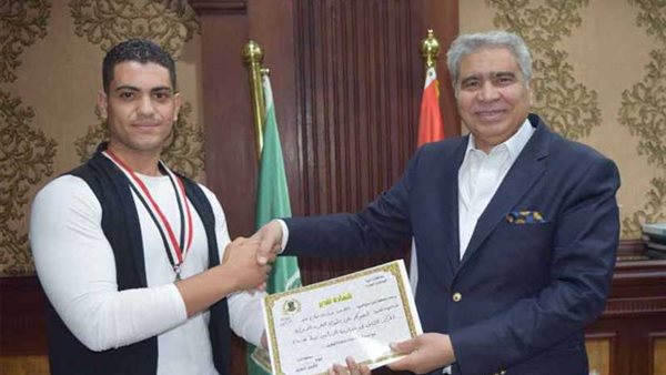 محافظ المنيا يكرم ثاني العرب بمصارعة الذراعين