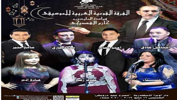 أغاني رمضان ومؤلفات الطرب في أوبرا الإسكندرية ودمنهور..غدا
