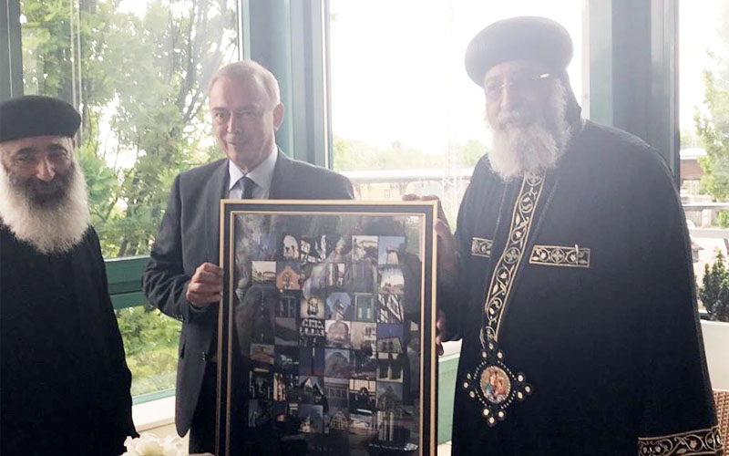 و أعطي السيد "ڤيرنار" هدية تذكارية لقداسة البابا تواضروس عبارة عن صورة تحتوي أهم معالم المدينة,