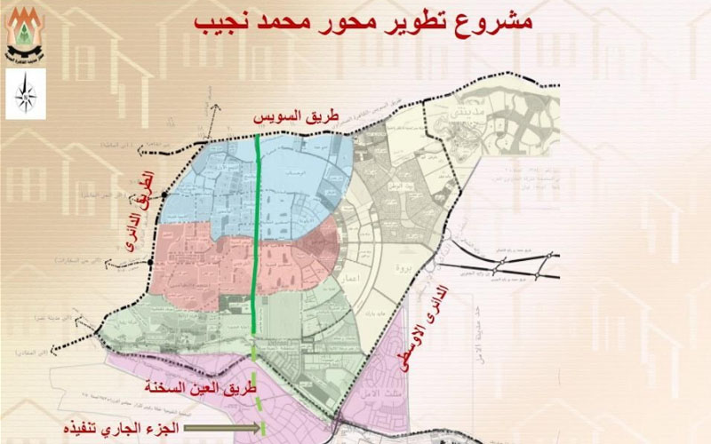 صرح الدكتور عاصم الجزار، وزير الإسكان والمرافق والمجتمعات العمرانية، بأنه تم التشغيل التجريبي، لمشروع تطوير محور محمد نجيب، بطول 13 كم، بمدينة القاهرة الجديدة، من طريق السويس وحتى طريق العين السخنة، وهو أحد المحاور المرورية الهامة بالمدينة، ويمر بالتجمعات الـ3 (الأول شمالاً، فالخامس، فالثالث جنوباً)، موضحاً أنه جارٍ استكمال الجزء الأخير من تقاطع المحور مع طريق العين السخنة إلى الدائرى الأوسطى بمعرفة الهيئة الهندسية للقوات المسلحة.