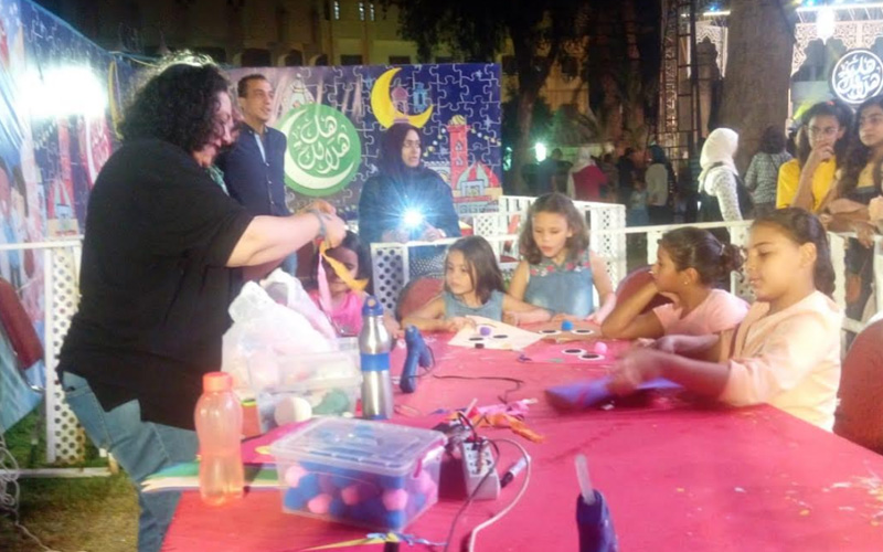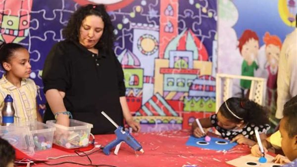 إلى جانب الورش الفنية فى "ركن الطفل" الذى يقيمه القطاع للأطفال، هواة الرسم والتلوين والأعمال الفنية الورقية تحت إشراف الفنانة سها كحيل.