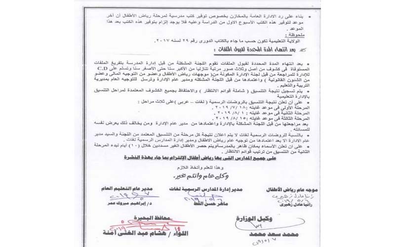اعتمد اللواء هشام آمنة، محافظ البحيرة، نشرة القبول برياض الأطفال 2019/2020م.