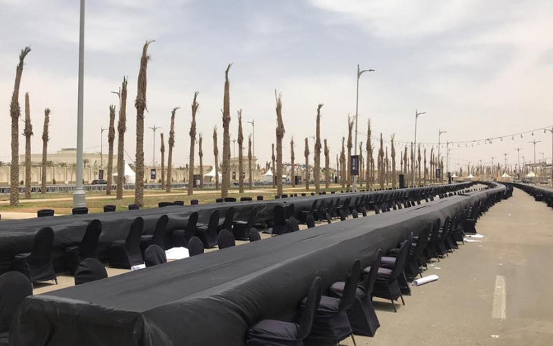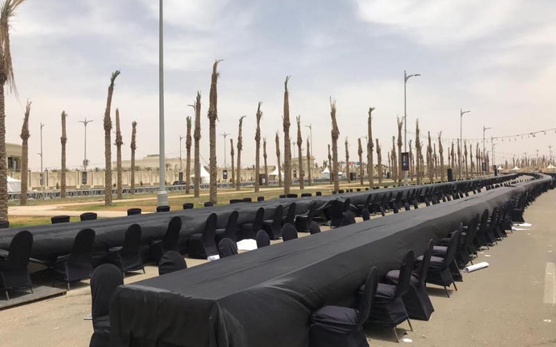 أعلنت شركة العاصمة الإدارية الجديدة عن آخر التجهيزات لحفل الإفطار الذي تنظمه، غدا السبت، والمقرر أن يضم أطول مائدة إفطار العالم.