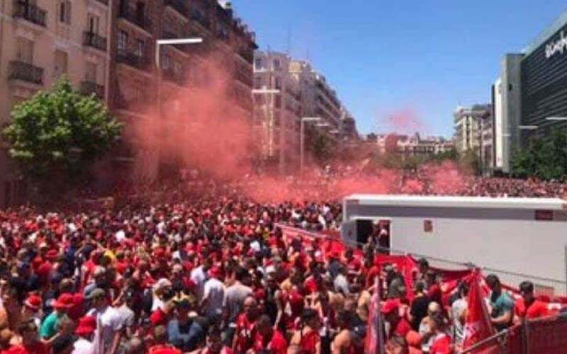 شاهد.. جماهير ليفربول تغزو ميادين إسبانيا متجهة لـ"ميتروبوليتانو"