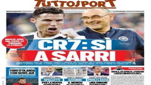 ونشرت صحيفة "توتو سبورت" الإيطالية، صورة رونالدو وساري وعنونتها على غلافها: "كريستيانو: نعم لساري".