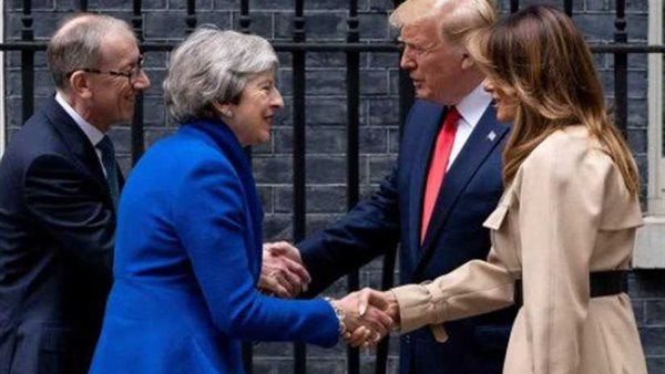 "ترامب وماي" تفاديا المصافحة في "10 داونينج ستريت" (صور)