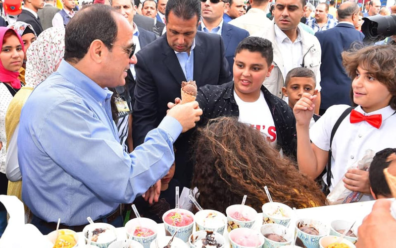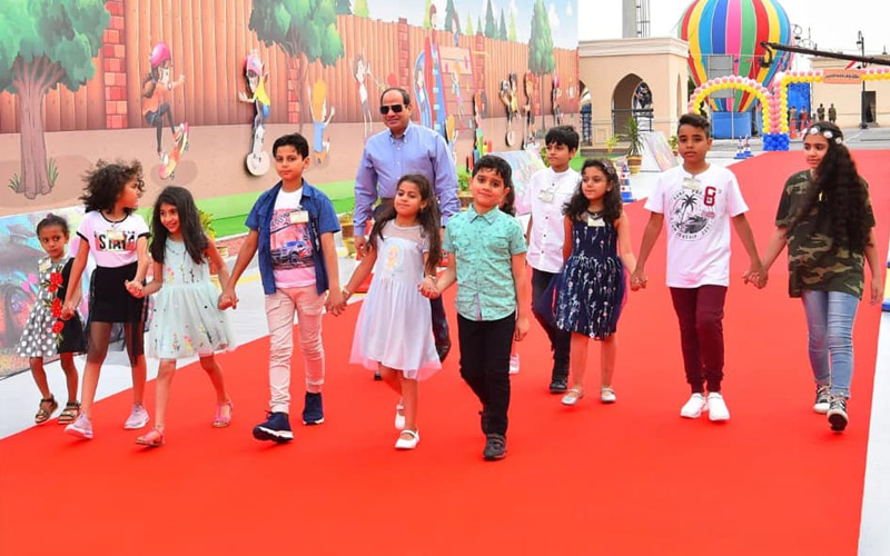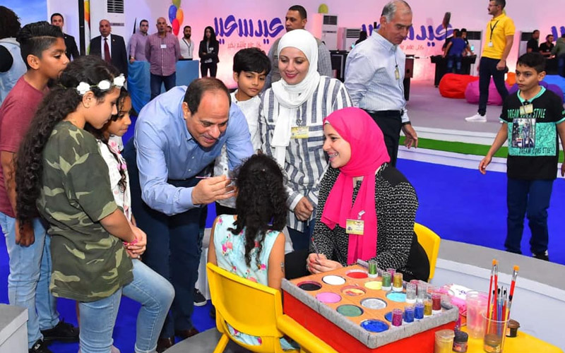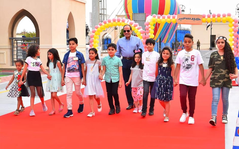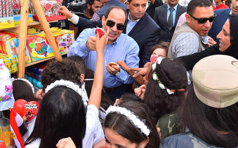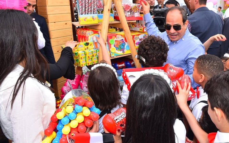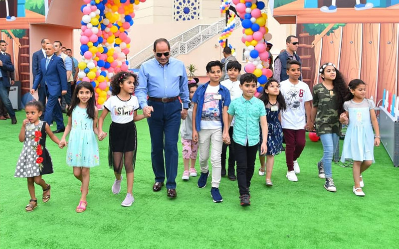 الرئيس السيسي يتناول الإفطار مع أبناء الشهداء ويشاركهم بهجة العيد