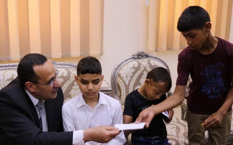 محافظ شمال سيناء يستقبل طلاب التربية الخاصة ويمنحهم العيدية