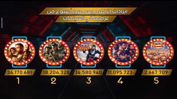 وجاء في المرتبة الثانية، فيلم الممر بإجمالي 18,204,328، وجاء فيلم سبع البرمبة، في المرتبة الثالثة، بإجمالي 14,580,940، بنهاية ثالث أيام العيد، وجاء فيلم حملة فرعون في المرتبة الرابعة 11,95,723.