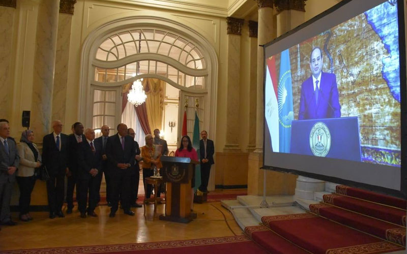 جدير بالذكر، أن الحفل بدأ بالاستماع إلى كلمة الرئيس عبدالفتاح السيسي، والتي سبق أن ألقاها بمناسبة يوم إفريقيا، وقد شهد الحفل سفراء الدول الإفريقية المعتمدين بالقاهرة، وعدد من الشخصيات العامة البارزة، بالإضافة إلى كبار مسئولي وزارة الخارجية.