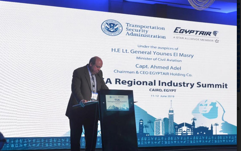 وصرح الطيار أحمد عادل رئيس الشركة القابضة لمصر للطيران في كلمته التي ألقاها خلال الافتتاح، بأن الشركة الوطنية لها من الريادة في المنطقة ومن الالتزام بالمعايير الدولية في مجال أمن الطيرانAVSEC ما يجعلها تشرُف باستضافة القمة في دورتها الحالية، مؤكدًا أن مصر للطيران ممثلة في قطاع الأمن بالشركة القابضة تنجح في اجتياز جميع التفتيشات والمراجعات المحلية والدولية بنجاح دون أي ملاحظات في الاجراءات الأمنية المطبقة علي رحلات مصر للطيران بمطار القاهرة و المطارات الداخلية، وعلى قمة تلك التفتيشات تأتي تفتيشات إدارة أمن النقل الأمريكي "TSA" التي تنظم القمة، والتي تتم من مرتين لثلاثة على مدار العام على الإجراءات الأمنية المطبقة على رحلات مصر للطيران المتجهة إلى الولايات المتحدة الأمريكية بدء من إجراءات السفر وحتى وصول الرحلة إلى وجهتها. ومنذ بداية إجراء التفتيشات اجتازت مصر للطيران ما يزيد على ٣٥ تفتيشًا حتى الآن من إدارة أمن النقل الأمريكي منذ عام ٢٠٠١ .