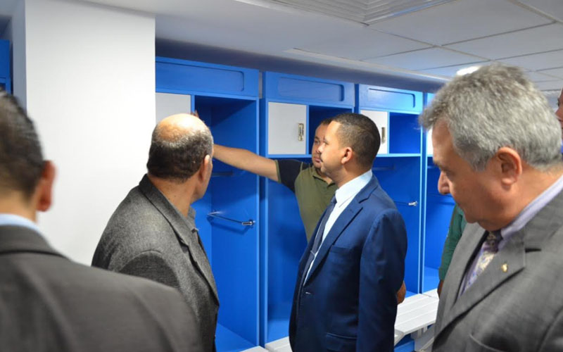 وتفقد الوفد أرضية الملعب وغرف خلع الملابس والمدرجات وكذلك دورات المياه، وغرف كاميرات المراقبة، والاطمئنان على التسهيلات الموضوعة لذوي الاحتياجات الخاصة وبوابات الدخول والخروج.