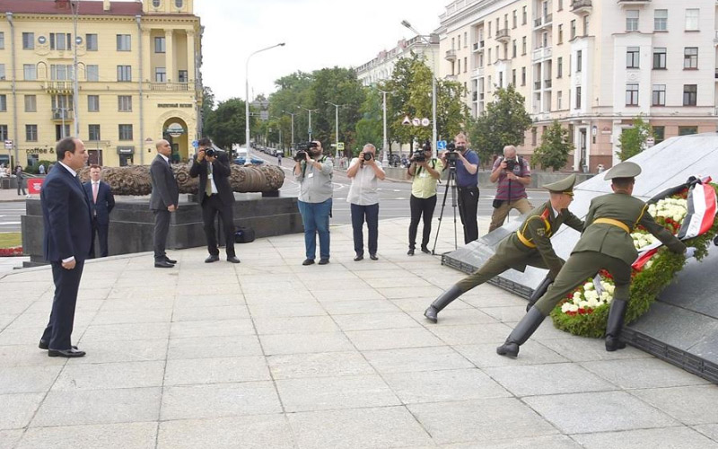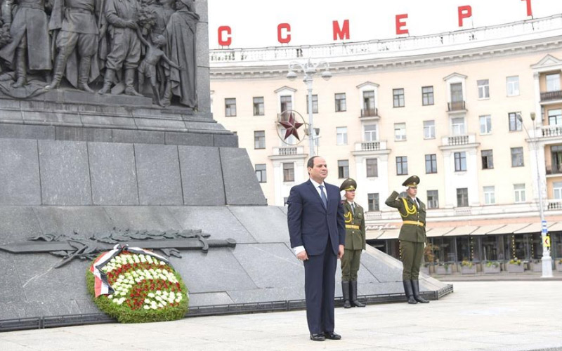 استهل الرئيس عبد الفتاح السيسي زيارته لبيلاروسيا بوضع إكليل من الزهور على النصب التذكاري للجندي المجهول، الذي يخلد ذكرى الجنود الذين ضحوا بأرواحهم دفاعا عن بلادهم أثناء الحرب العالمية الثانية، والذي يعرف باسم الشعلة الخالدة.
