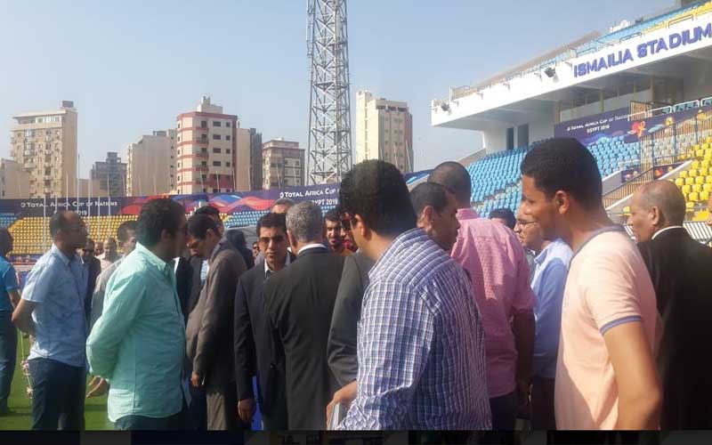 مع الساعات الأولى من صباح يوم الثلاثاء حرص الدكتور أشرف صبحي وزير الشباب والرياضة يرافقه اللواء حمدي عثمان محافظ الإسماعيلية والكابتن محمد شيحة رئيس المجموعة السادسة لبطولة كأس الأمم الإفريقية والأستاذ سامي عبد الحليم وكيل وزارة الشباب والرياضة، على القيام بجولة تفقدية لمنشآت استاد الإسماعيلية.