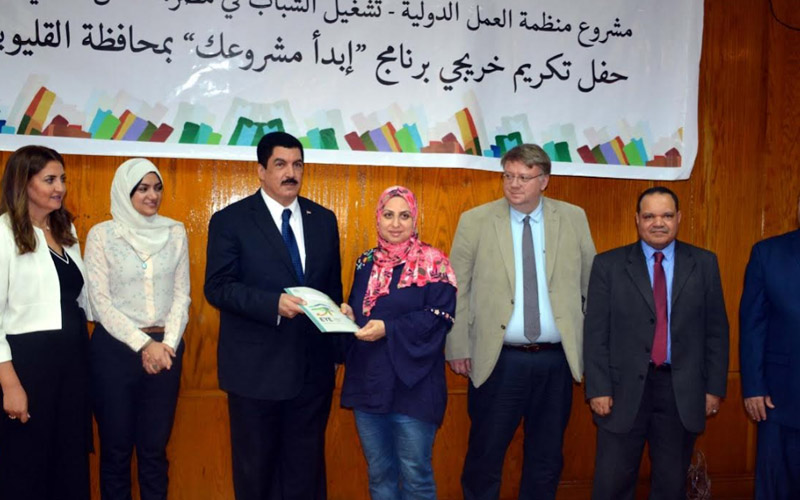 شهد الدكتور علاء عبدالحليم محافظ القليوبية، اليوم الاثنين بمكتبة مصر العامة حفل تكريم خريجي برنامج :"ابدأ مشروعك" بمحافظة القليوبية، والذي تنظمه منظمة العمل الدولية بهدف تدريب وتشغيل الشباب بحضور إيريك أوشلان مدير الفريق الفني للعمل اللائق لدول شمال إفريقيا ومدير مكتب منظمة العمل الدولية بالقاهرة والدكتورة إيمان ريان نائب محافظ القليوبية، ونشوى بلال مديرة مشروع تشغيل الشباب في مصر بمنظمة العمل الدولية والأستاذ رأفت عباس مدير إدارة الخدمات غير المالية بجهاز المشروعات الصغيرة والمتوسطة نائبًا عن الدكتورة نيفين جامع رئيس جهاز تنمية المشروعات الصغيرة والمتوسطة والأستاذ أحمد الجندي مدير إدارة ريادة الأعمال بجهاز تنمية المشروعات الصغيرة والمتوسطة.