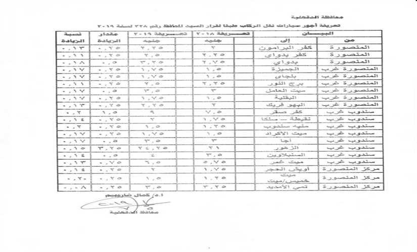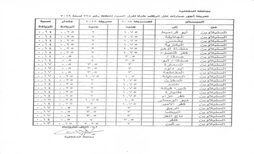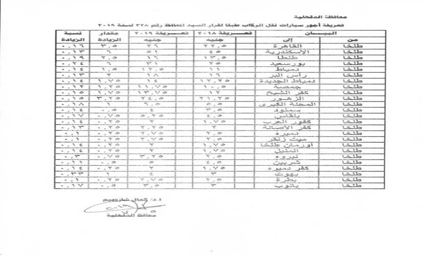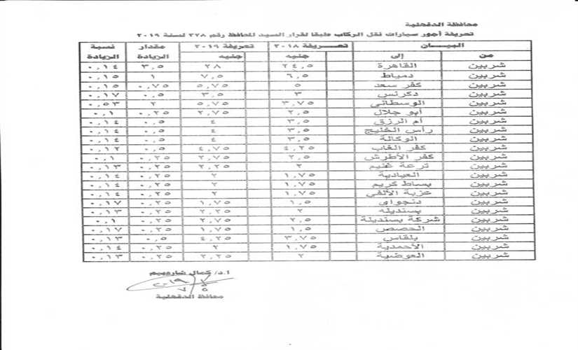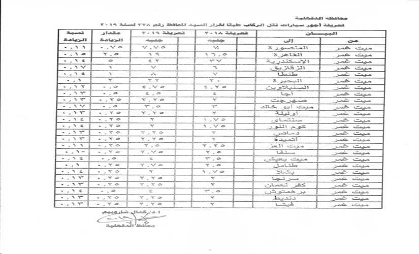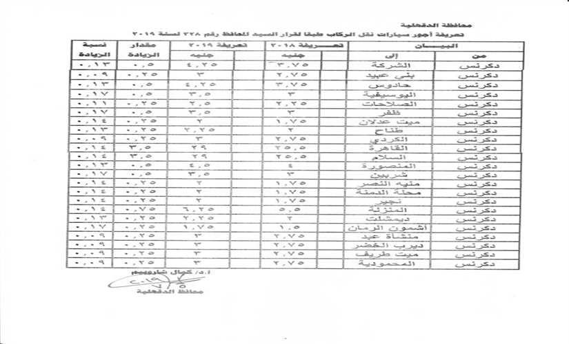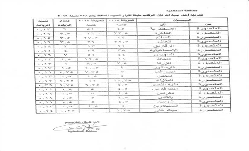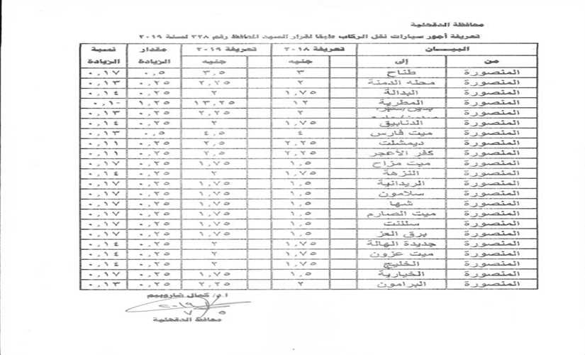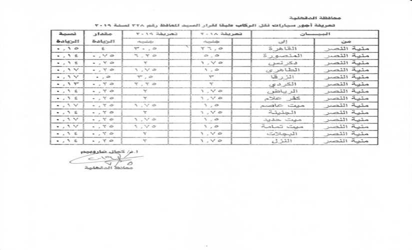 ننشر تسعيرة الركوب الجديدة لخطوط المواصلات بالدقهلية