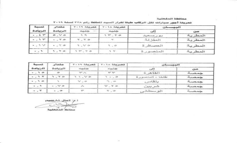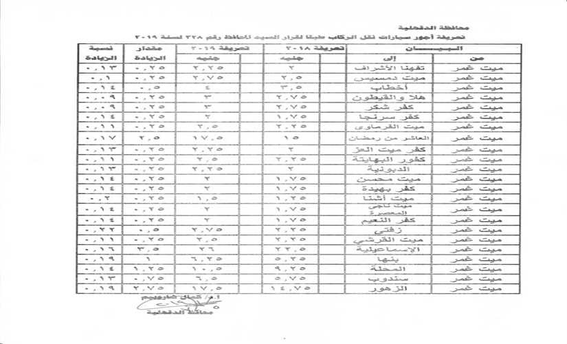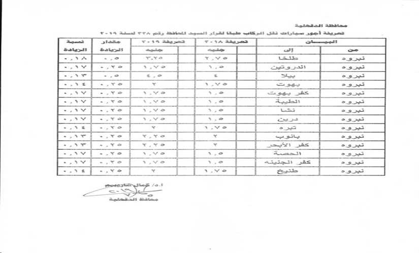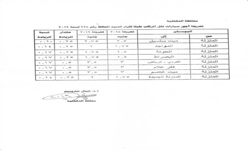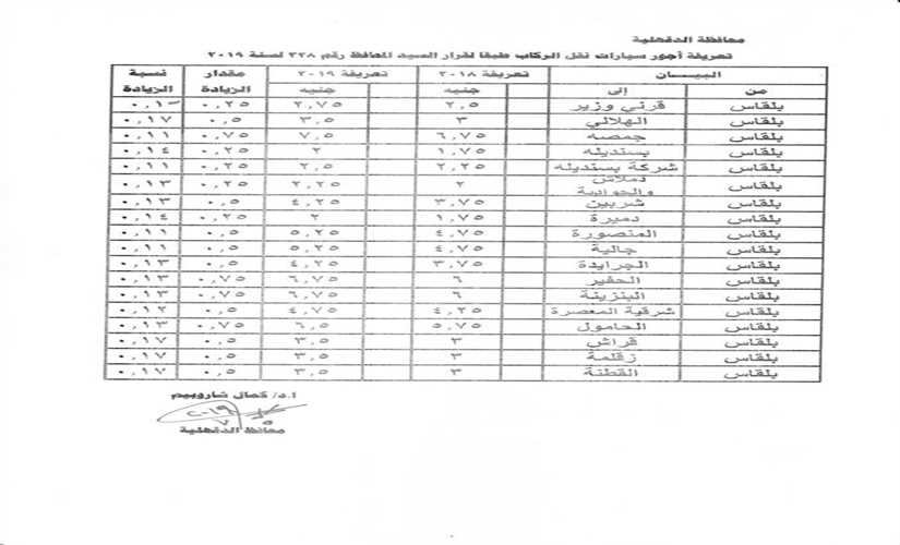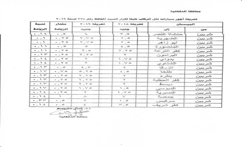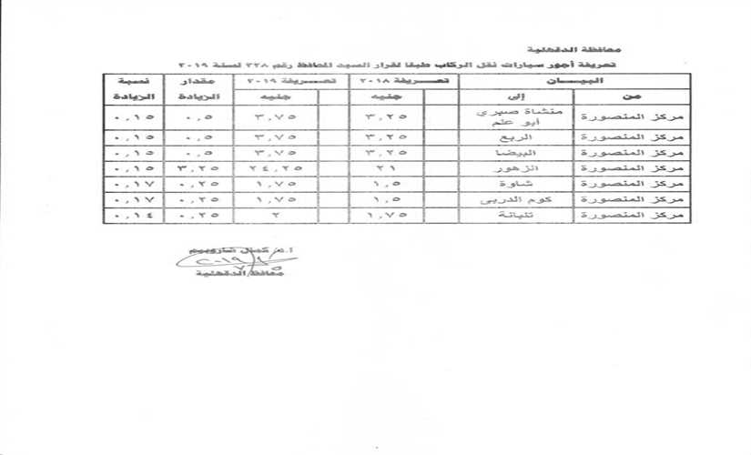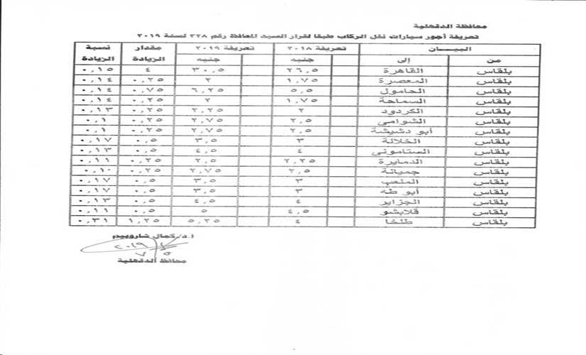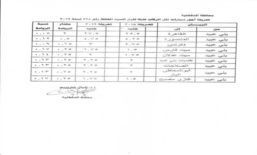 ننشر تسعيرة الركوب الجديدة لخطوط المواصلات بالدقهلية