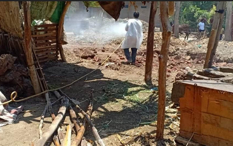 وقامت اللجنة بالمعاينة على الطبيعة للمنطقة المبلغ عنها، حيث تبين بوجود حشرة القراد والتي تتطفل على الحيوانات والكلاب الأليفة، وتم اتخاذ كل الإجراءات الوقائية، برش المنطقة بالكامل بالمبيد القاتل للحشرات الزاحفة، ومبيد البيوتكس الآمن لمقاومة هذه الحشرة، كما تم التنبيه على الأهالي بعدم إلقاء المخلفات بهذه المنطقة.