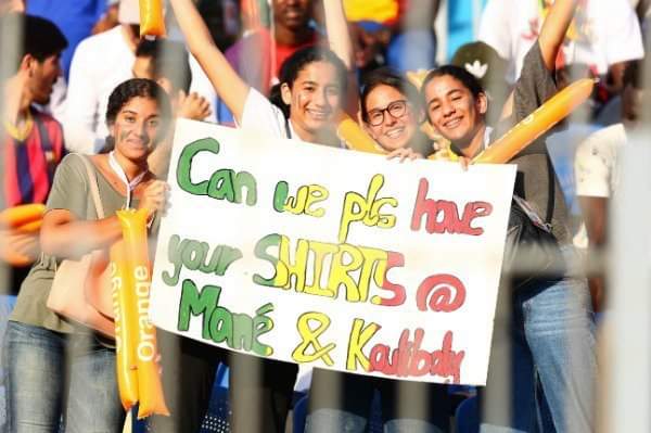 في المقابل، طلبت مشجعات مصريات عبر لافتة، الحصول على قميص الثنائي ساديو ماني وكاليدو كوليبالي نجمي أسود التيرانجا عقب اللقاء.