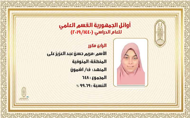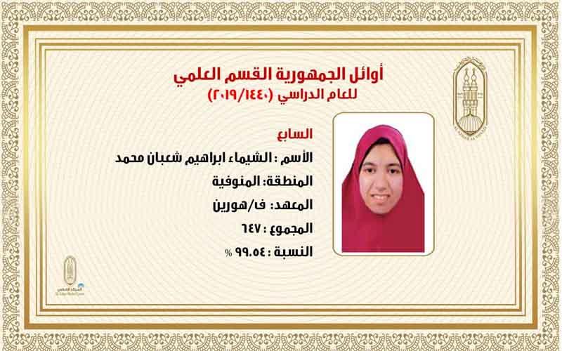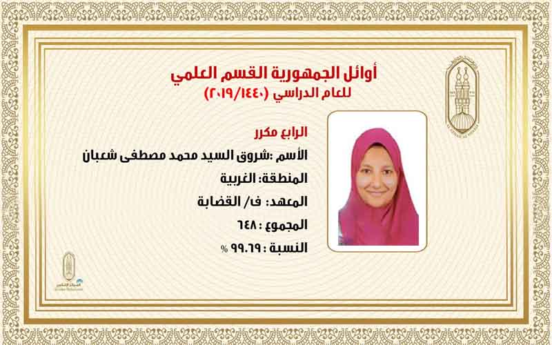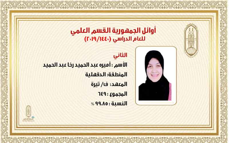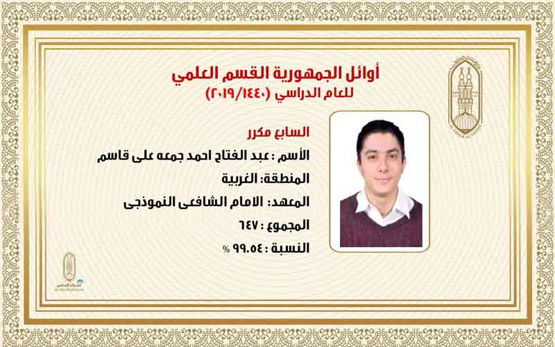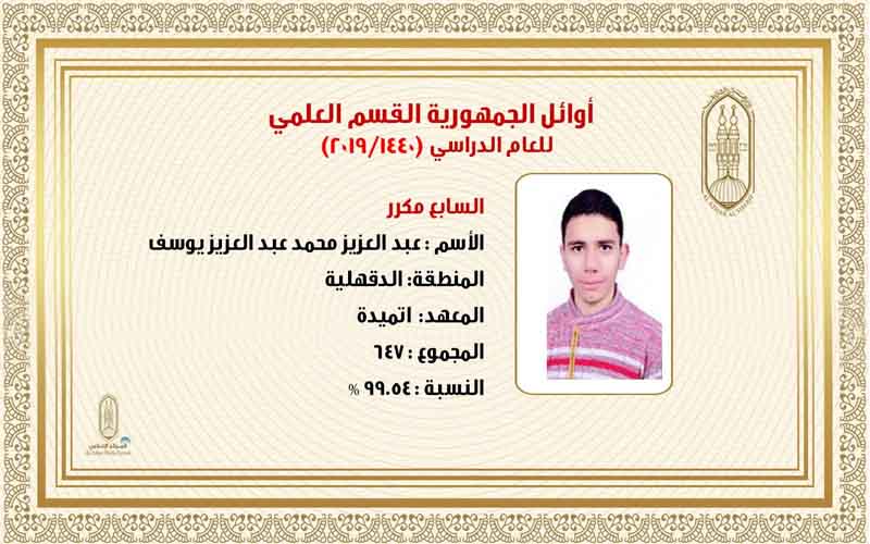 وتنشر بوابة روزاليوسف أوائل الثانوية الأزهرية بالقسم الأدبي.