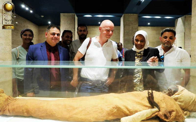 كما زار رئيس الاتحاد الدولي لكرة القدم ( الفيفا) قاعة المومياوات الملكية ومجموعة مقتنيات يويا وتويا وقاعة تانيس وقاعة مقتنيات الملك توت عنخ آمون، حيث ابدي اعجابه الشديد بالمتحف وما يضمه من قطع اثرية فريدة وعريقة وخاصة القناع الذهبي للملك توت عنخ آمون وتمثال شيخ البلد وتمثالي الملك امنحتب الثالث وزوجته الملكة تي وتمثال الملك خفرع.