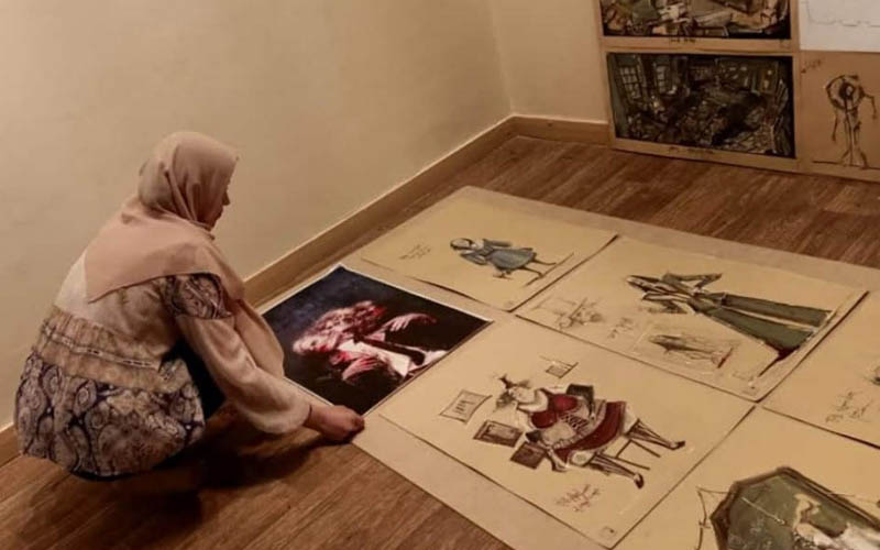 المعرض يحتوى على ١٩ لوحة مقاس ٢٤٤ سم × ٢٤٤ سم، تشمل اللوحة الواحدة مجموعة أعمال لكل فنان تصل إلى ١٥ عملا، ويشرف على المعرض الدكتور سمير شاهين، الأستاذ بقسم الديكور بكلية الفنون الجميلة جامعة حلوان .